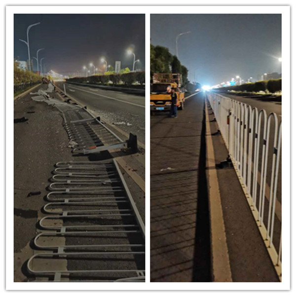 1月23日,農(nóng)歷小年,大家都沉靜在歡慶的節(jié)日氣氛里。晚上11時許,G347國道大觀區(qū)段K290+100處,中央隔離護欄因交通事故損壞傾倒近1公里,嚴重影響過往車輛通行。