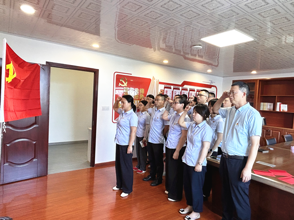【重溫誓言守初心】 活動(dòng)現(xiàn)場(chǎng),全體黨員面向鮮紅黨旗莊嚴(yán)宣誓。“我志愿加入中國(guó)共產(chǎn)黨......”鏗鏘誓言響徹會(huì)場(chǎng),12句話、80個(gè)字的入黨誓詞,在支部書(shū)記領(lǐng)誓下字字千鈞。全體黨員通過(guò)集體政治儀式,重憶入黨經(jīng)歷、重溫信念追求,進(jìn)一步強(qiáng)化了"一句誓言、一生作答"的思想自覺(jué)。