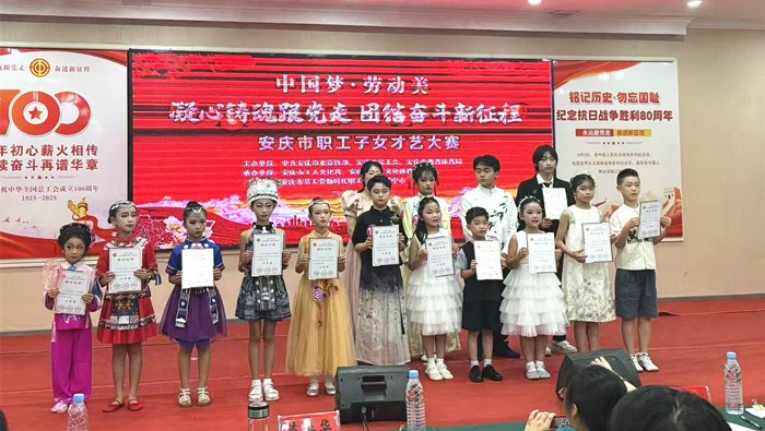 7月24日,由市委宣傳部、市總工會、市教體局聯(lián)合主辦的“中國夢·勞動美——凝心鑄魂跟黨走 團(tuán)結(jié)奮斗新征程”安慶市職工子女才藝大賽落下帷幕。作為全市職工家庭文化生活的重要賽事,本次活動吸引了 59 家單位的 198 組選手同臺競技,路達(dá)公司職工子女楊子軒憑借一曲《上下五千年》脫穎而出,斬獲二等獎。